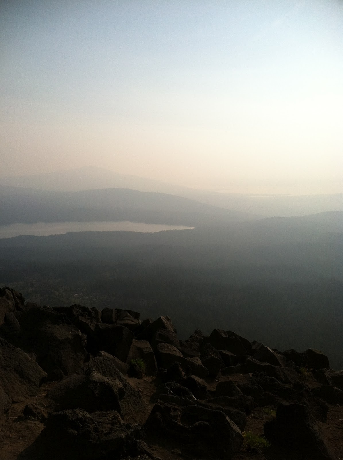 This summer has been so busy that I've hardly had time for any hiking or mountaineering. Since it was the last week of summer term and I was all caught up on homework, I decided to head back down to McLoughlin, this time fully intent on reaching the summit. This time around, I drove down in the evening and car camped near the trailhead so I could get an early start. Weather was clear and cool, but fire danger was high, so no campfires. I was able to get at least a few hours of sleep before I decided to get moving around 5am. After getting my gear sorted out, camp broke down, and chugging a crappy cup of instant coffee, I was on the trail by 5:45. First time finally starting out by headlamp before sunrise! I was the first on the trail, but I knew it would get crowded as the day went on. This time around, I decided to stop about every hour to hydrate and eat something so that I wouldn't run out of steam before the summit. I started meeting other groups that were coming up behind me and we would leap frog each other for awhile up until around the 7000' mark (side note: around this point I ran into kylenicolls from summitpost.org. We both knew each other would be on the mountain that day.) I was moving slow and steady, so it didn't bother me to get passed up here and there. All together I believe that around 10 people had passed me up by the time I reached the summit, but there probably at least another 40+ people behind me. I reached the summit around 11:30, under six hours was not bad at all for 5.5 miles and 4000'. The last mile was nothing but boulder crawling and scree which made for a miserable finish up until the last 50 yards. As I was finishing the last little stretch, I was cheered on by the other groups I'd talked with along the way, giving me a boost of energy to make the final push.